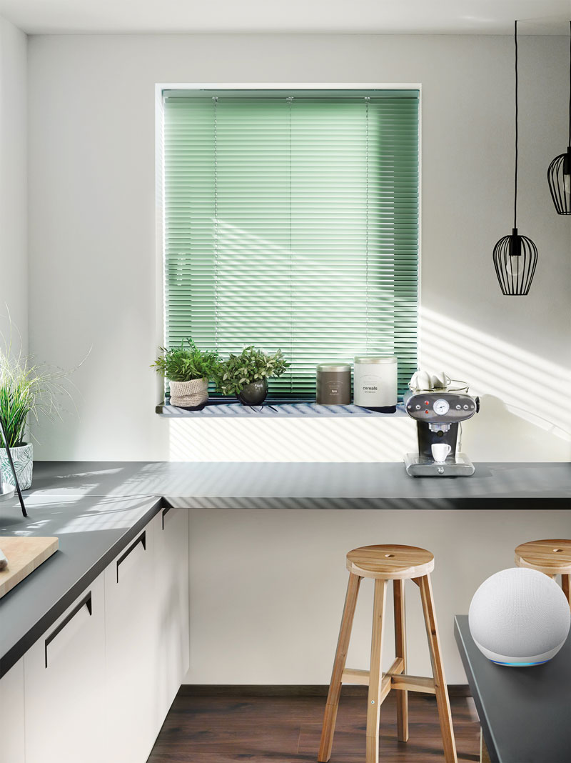 Jalousien sind aus Holz oder Aluminium erhältlich  - und selbstverständlich in verschiedenen Farben und Stilen. Unsere Produkte der Marke Erfal können mit elektrischen Antrieben ausgestattet werden, die eine bequeme Steuerung per Fernbedienung ermöglichen.